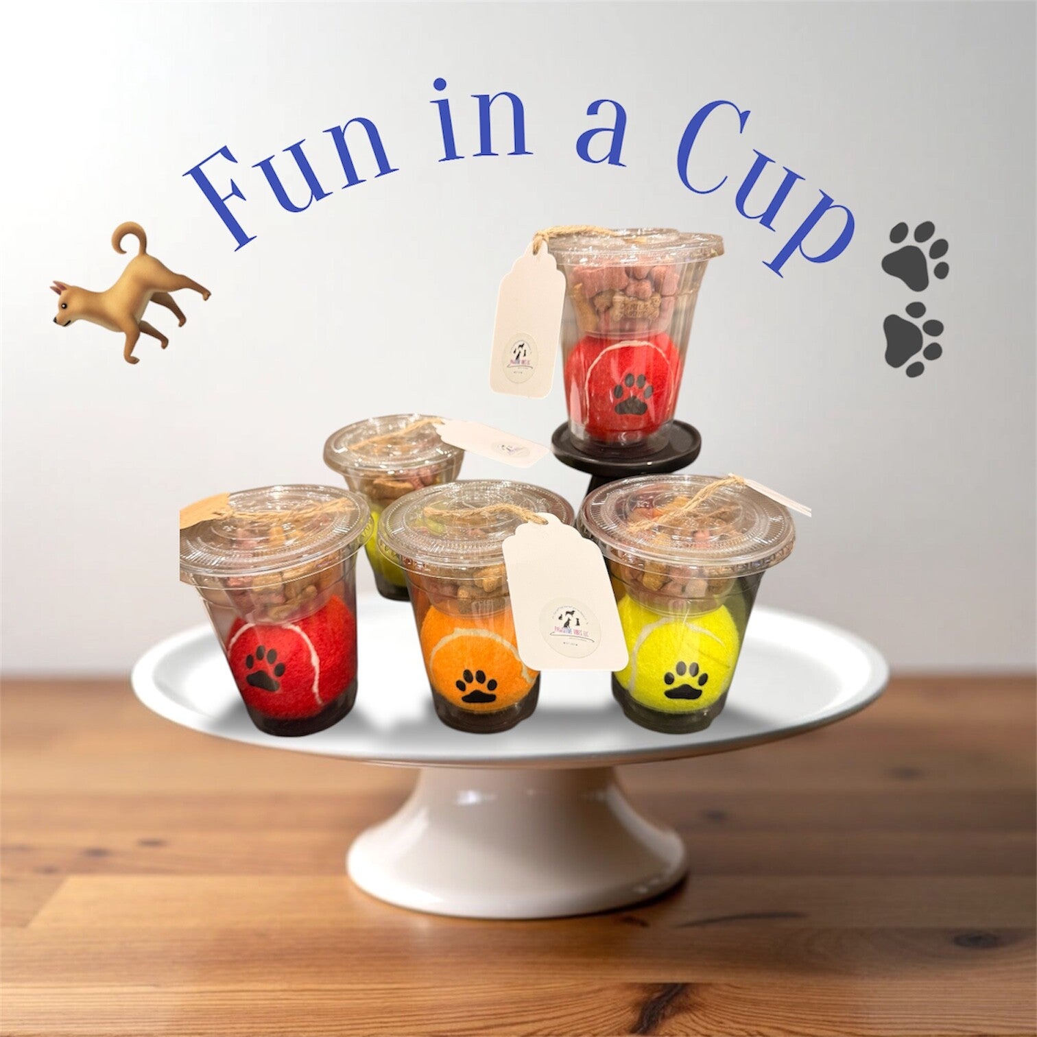A paw print tennis ball for those dogs who love to play fetch with a bonus mini treat cup for your pup.