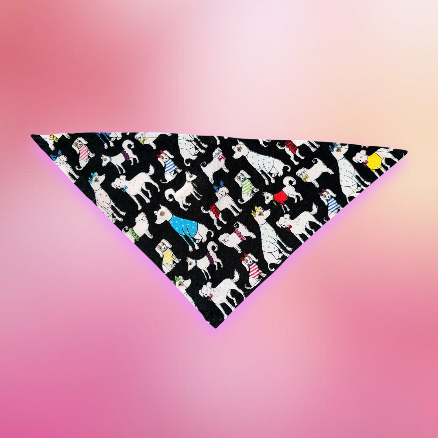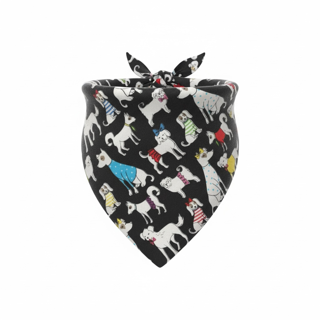 -Bandana Print: Black with dogs, Cotton fabric.