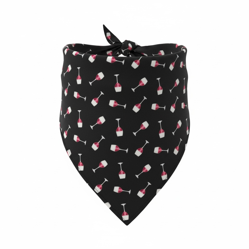 -Bandana Print: Black color with small red wine filled glasses - Cotton fabric.