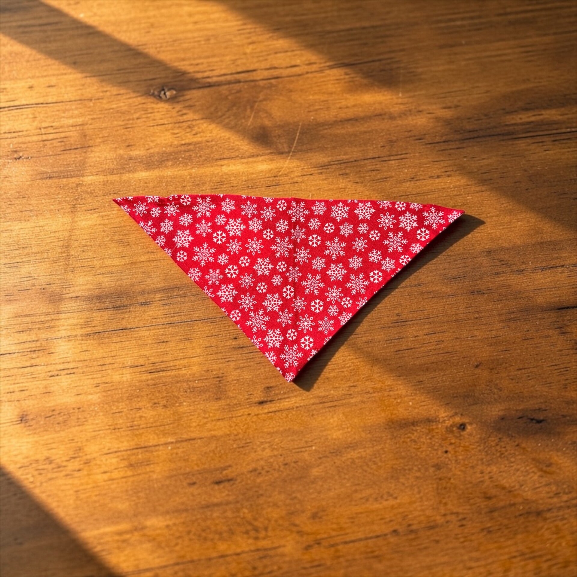 -Bandana Print: Red with snowflakes, Cotton fabric.