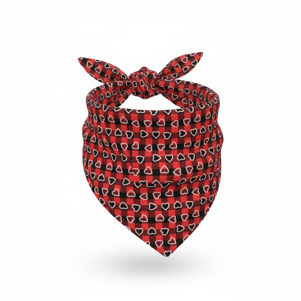 -Bandana Print: Red/Black chech with hearts, Cotton fabric.