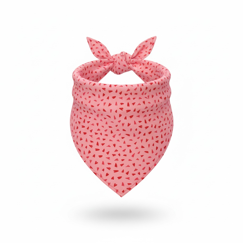 -Bandana Print: Pink with red hearts, Cotton fabric.