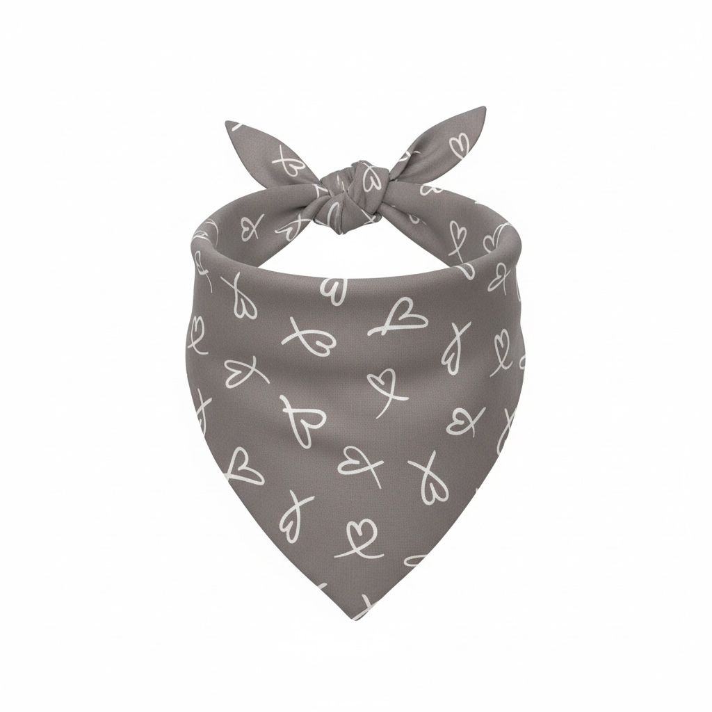 -Bandana Print: Grey color with white hearts, Cotton fabric.