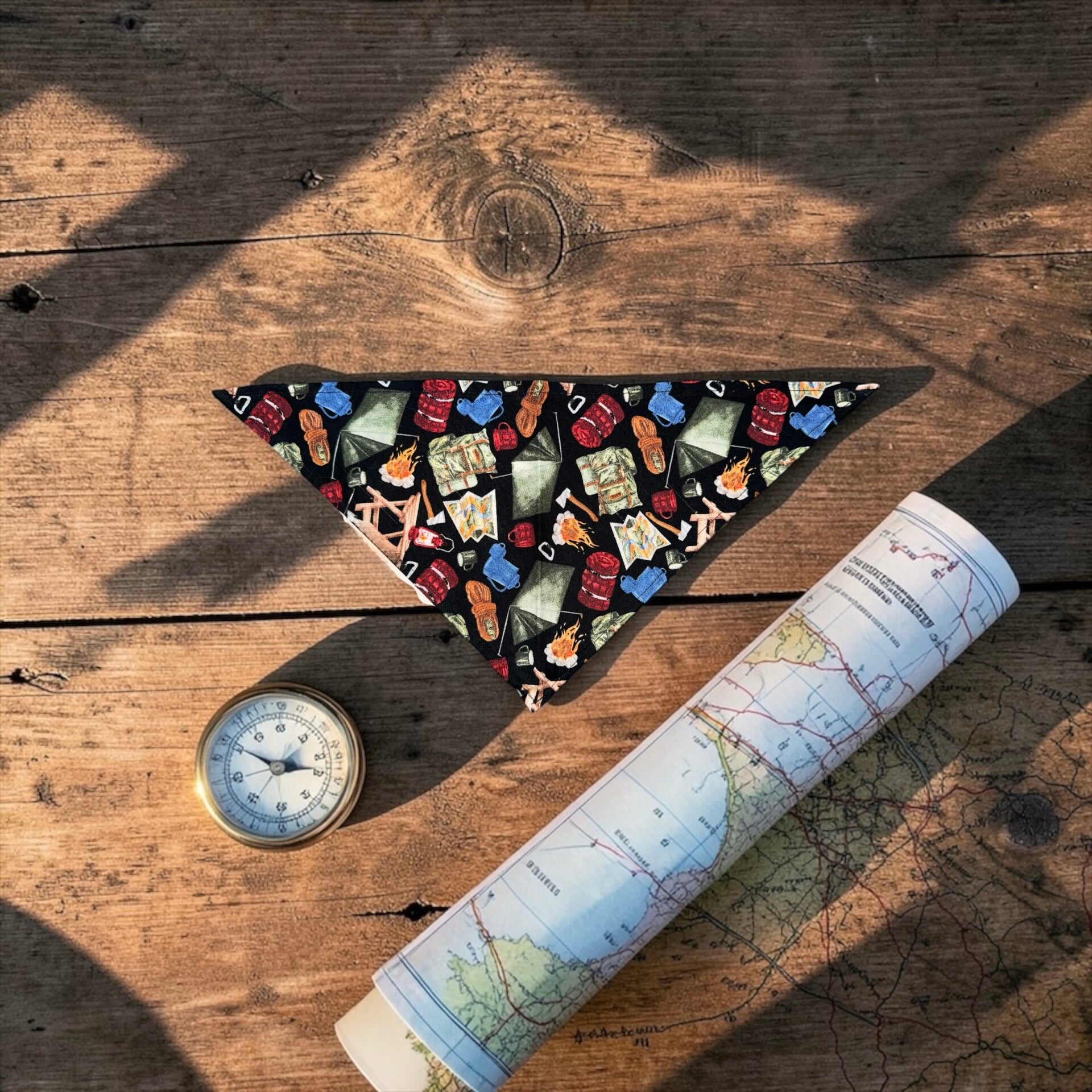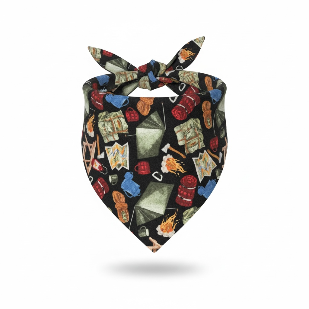 -Bandana Print: Black color with camping, Cotton fabric.