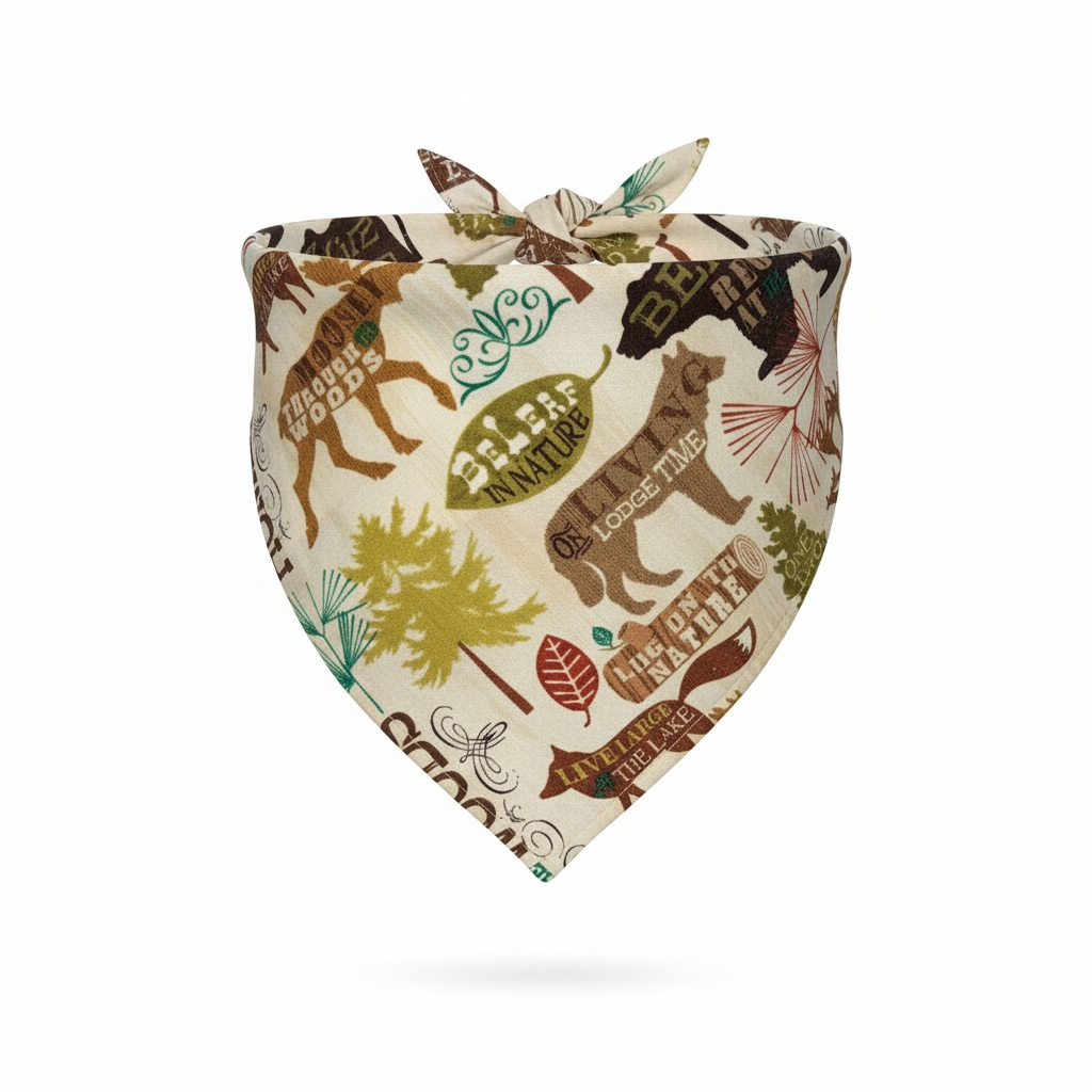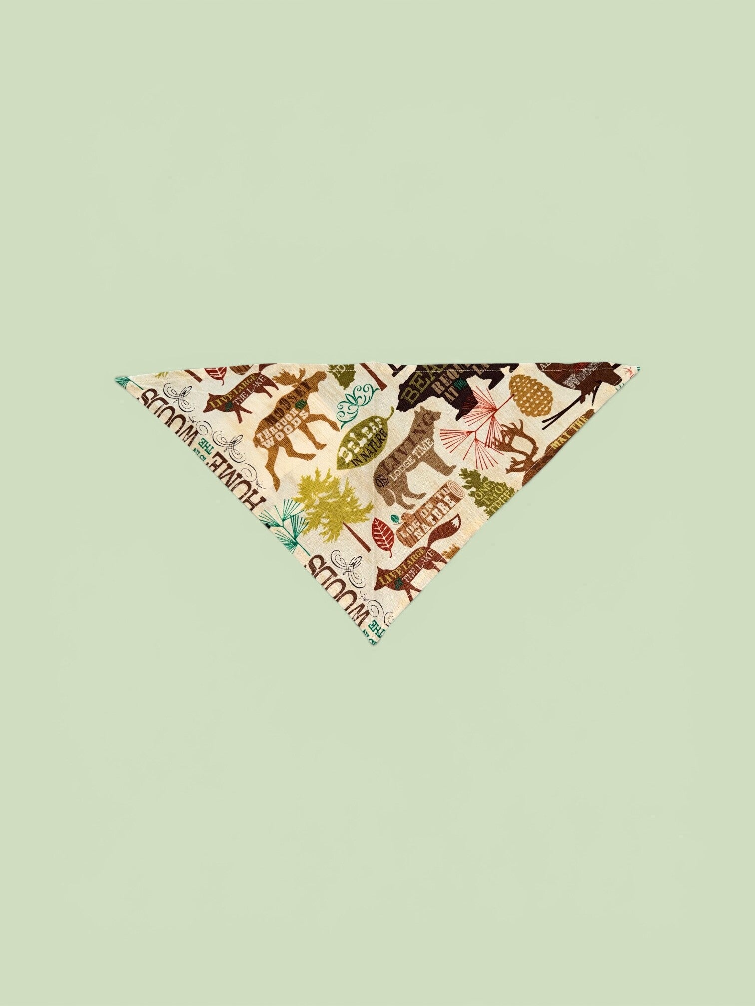 -Bandana Print: Beige color with forest animals, Cotton fabric.