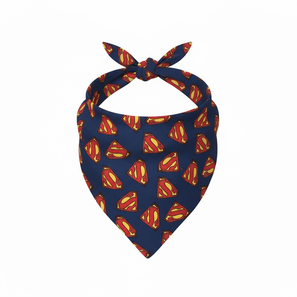 -Bandana Print: Dark blue with Superman symbol, Cotton fabric.