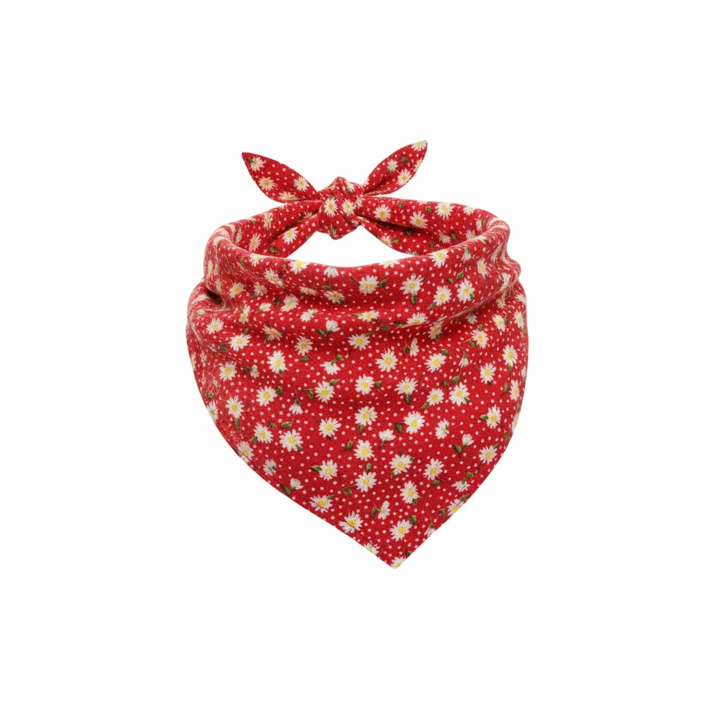 -Bandana Print: Red pokadot with white flowers, Cotton fabric.