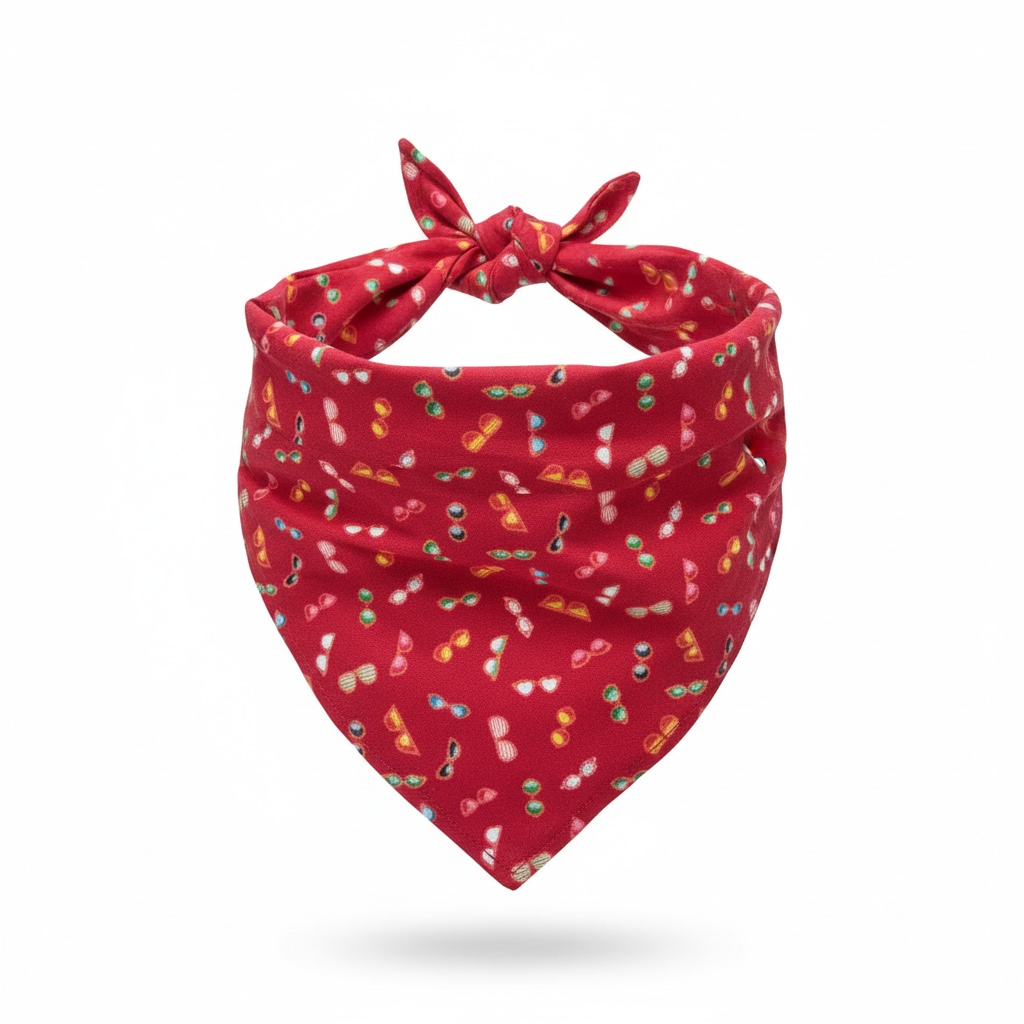 -Bandana Print: Red color with sunglasses, Cotton fabric.