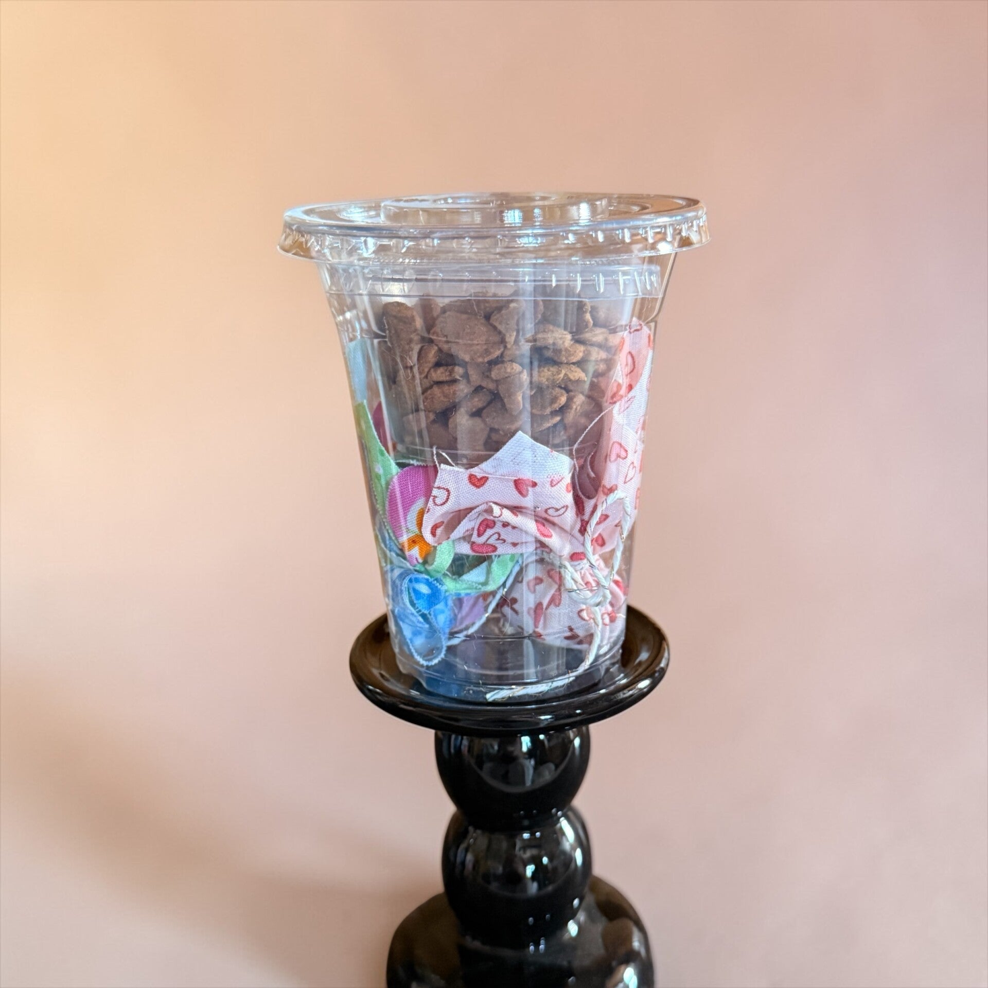 A Catnip Drop & a Cat Spider Toy with a bonus mini treat cup for your kitty cat.