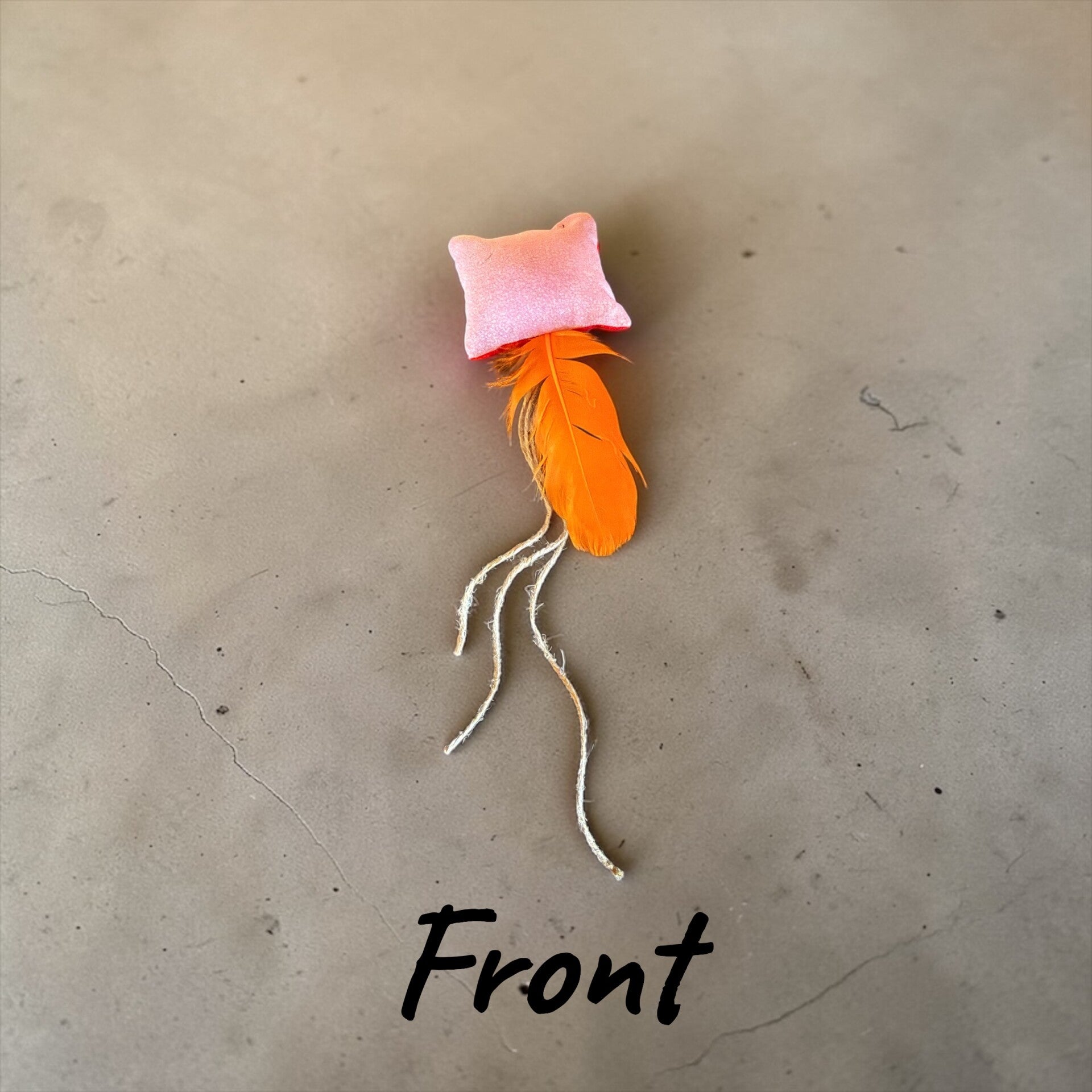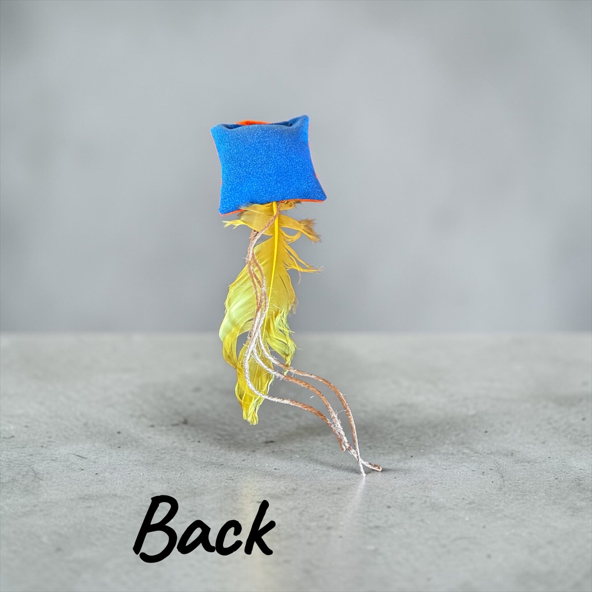 Does your cat need something to do? Have they tried catnip? Our handmade Catnip toy is sure to be a hit with the many feline friends out there! Small pillow-like toy with catnip, feather and jute strings sewed into the catnip toy. Get yours today!