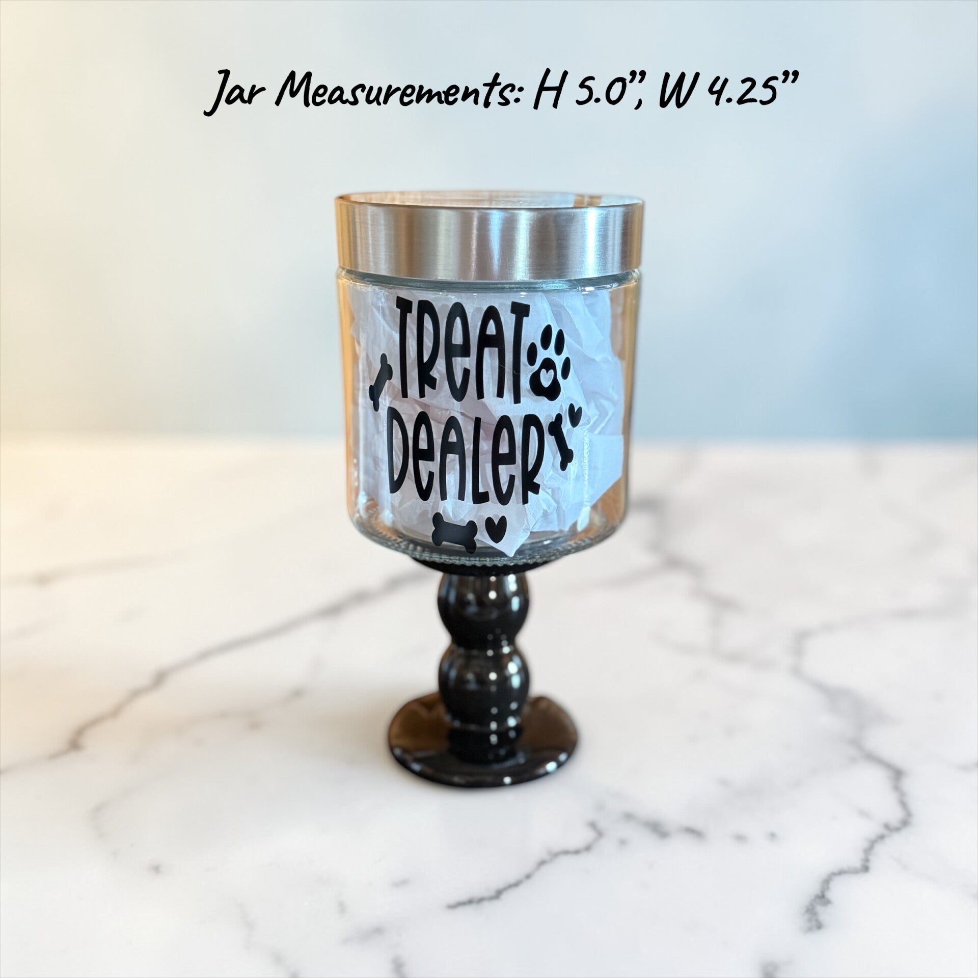 Medium/Large Treat Jars with twist top lids for Dogs. Customization available.
