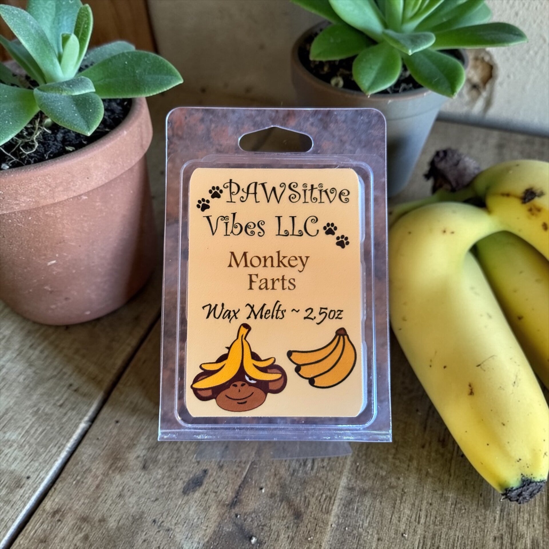 - Wax Melt Scent & Size: Monkey Farts 2.5oz.