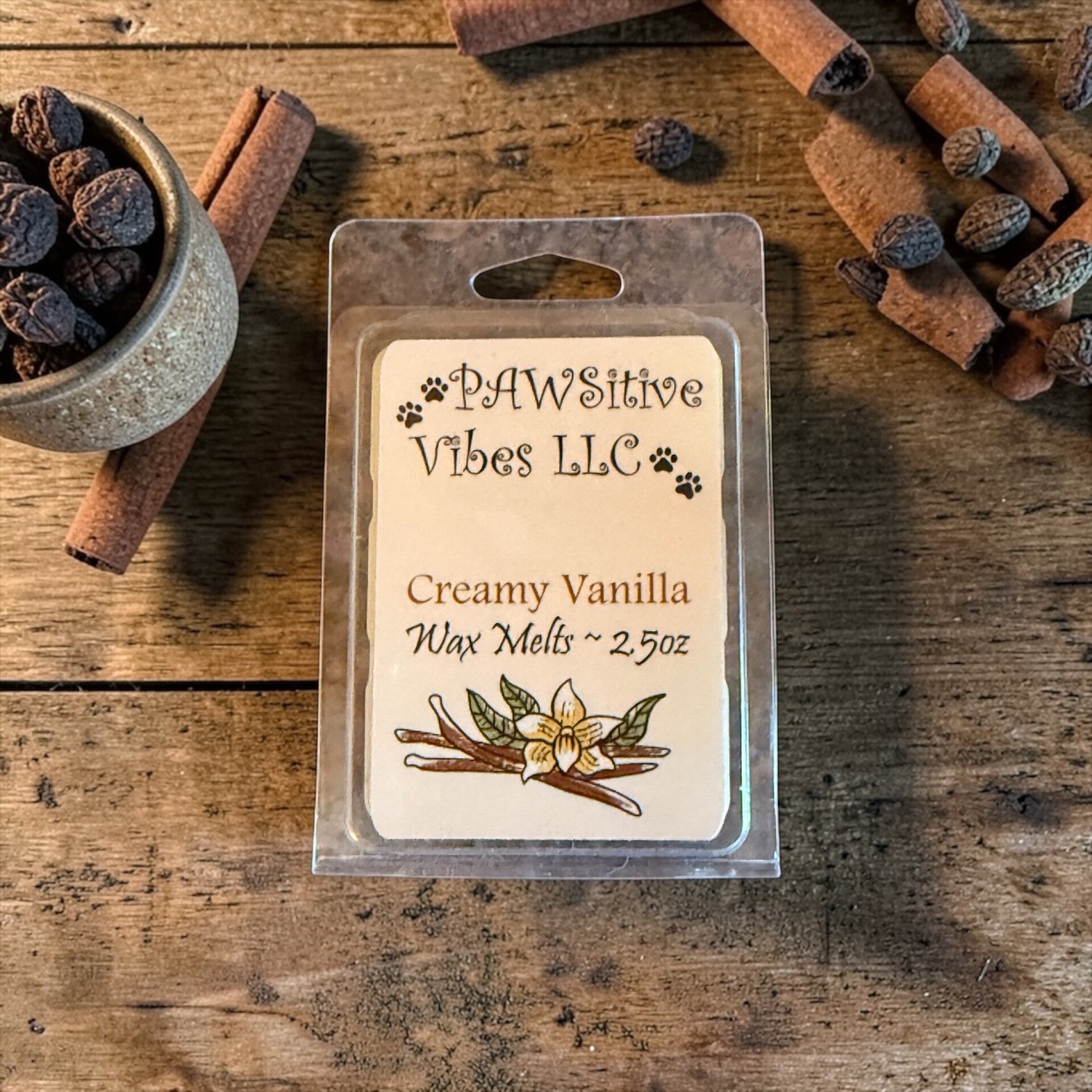 - Wax Melt Scent & Size: Creamy Vanilla 2.5oz.