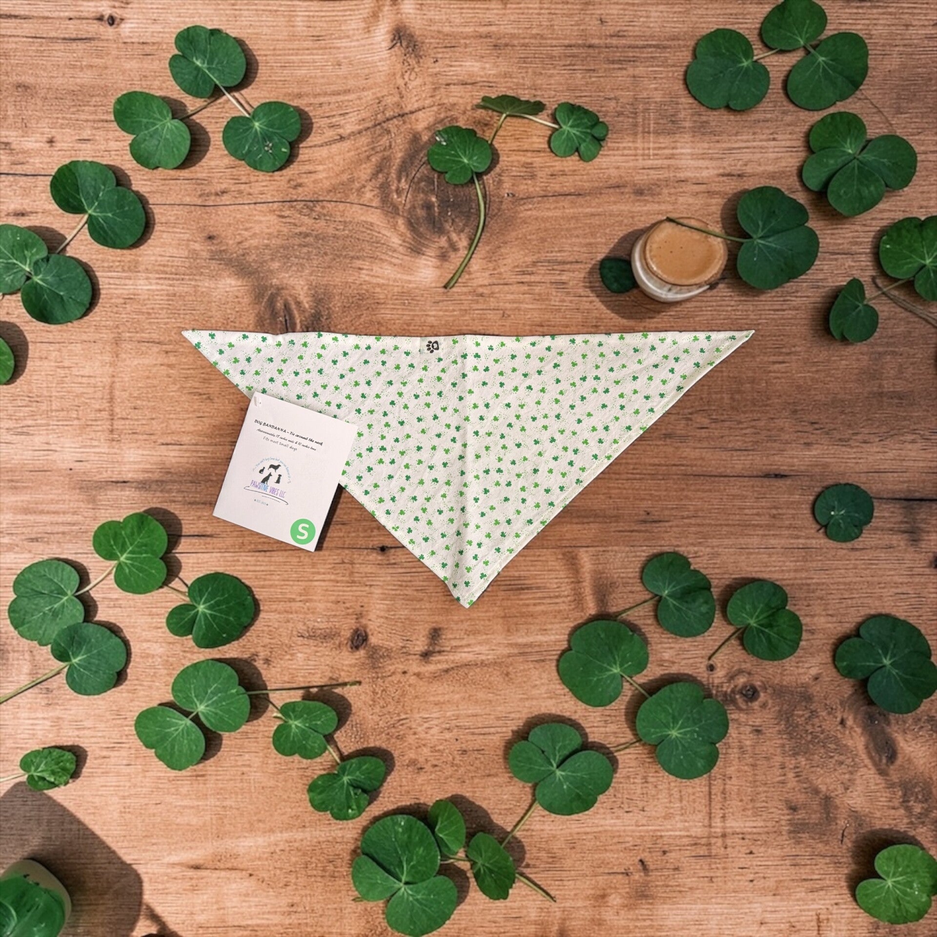 - Bandana Print: White Color with shamrocks, cotton fabric.
